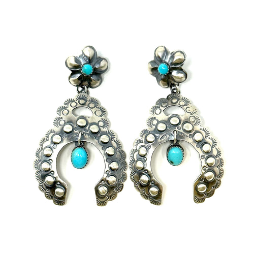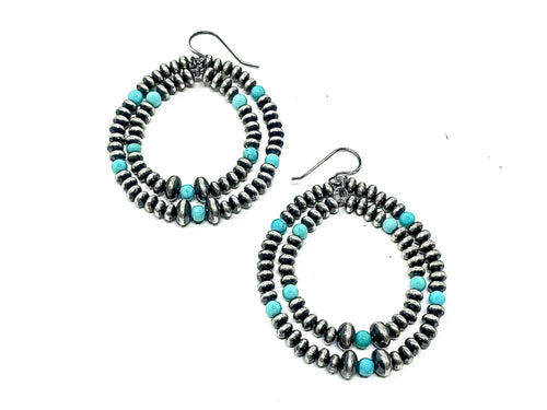 Double Strand Navajo Pearl Hoops with Turquoise Beads