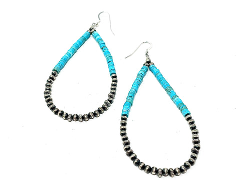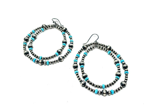 Multi Navajo Pearl Hoops with Turquoise Beads